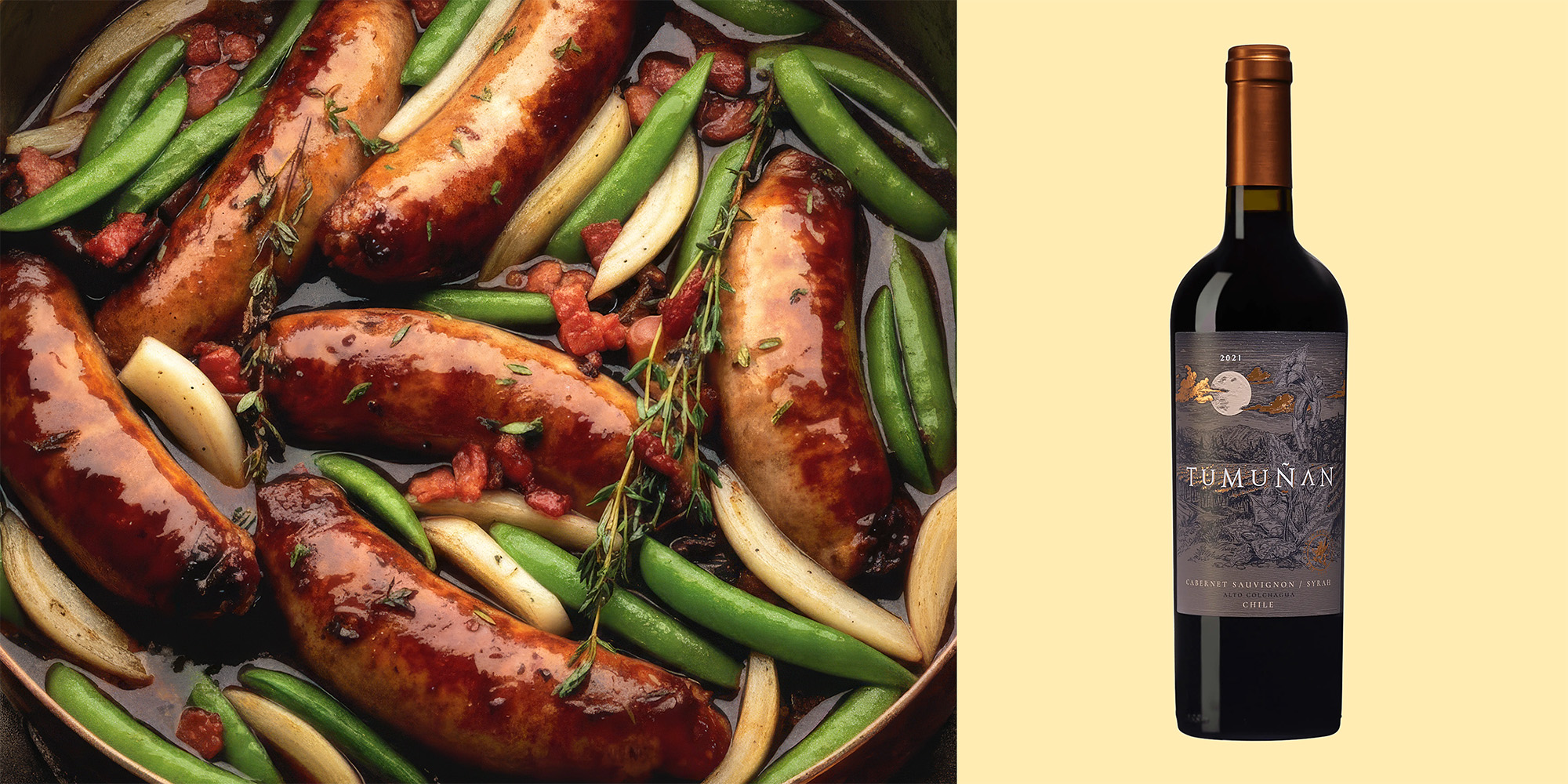 En maffig Cab & Syrah-blend från korvexperternas Chile är precis vad som behövs här. Vinets fyllighet, mogna mörka bärtoner och mjuka tanniner möter chorizon på ett harmoniskt sätt, medan syra och pepprighet skär igenom fettet och lyfter fram djupet. Resultatet är en varm, inbjudande helhet där varje tugga och klunk förstärker den andra, ett rustikt möte mellan krydda, umami och rik fruktighet.