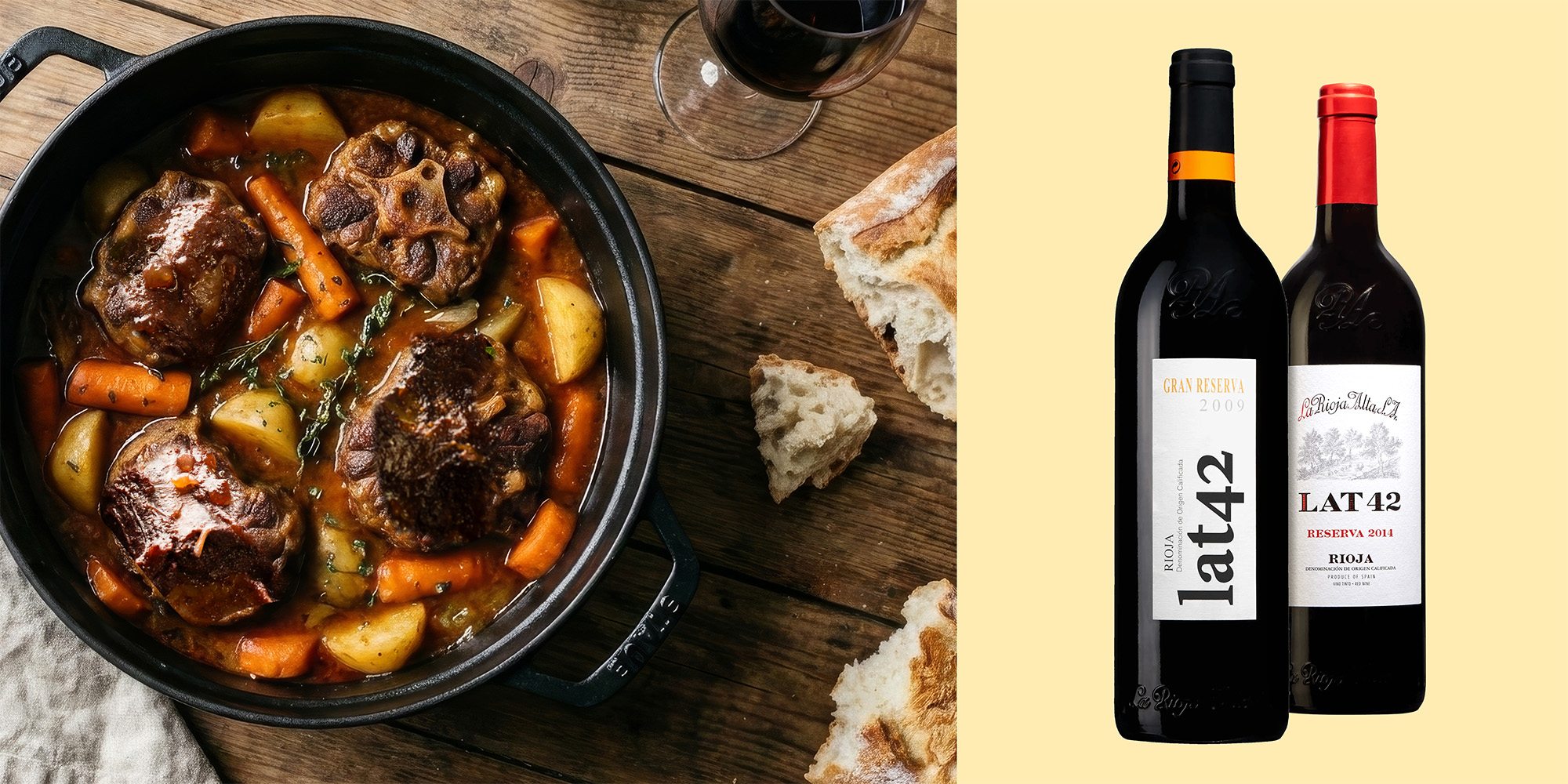 Just denna balans mellan mogen frukt, strukturerad kropp och ekens varma kryddor gör vinerna perfekta till Rabo de Toro. Den långa tillagningen ger grytan en djup fyllighet och kraftfull smak som möter vinets struktur på bästa sätt, medan vinets syra håller rätten frisk och lyfter fram både köttet och de långkokta grönsakerna.